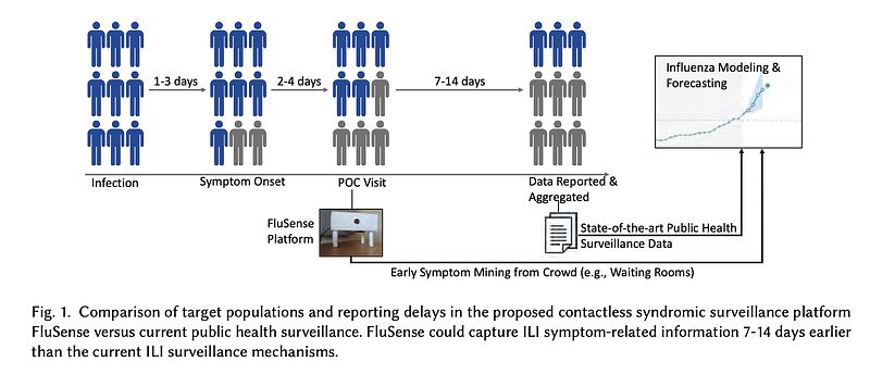 Al Hossain, Forsad, et al. “FluSense: a Contactless Syndromic Surveillance Platform for Influenza-like Illness in Hospital Waiting Areas.” Proceedings of the ACM on Interactive, Mobile, Wearable and Ubiquitous Technologies, vol. 4, ACM New York, NY, USA, 2020, pp. 1–28, doi:doi.org/10.1145/3381014.