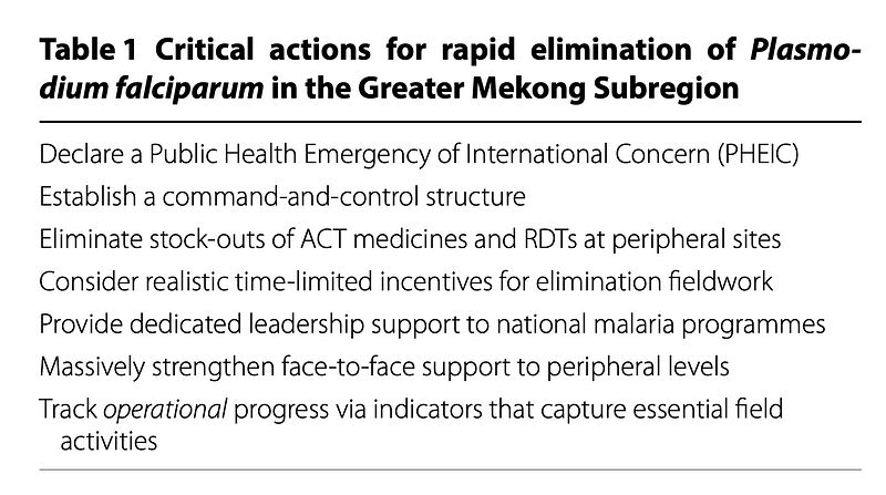 Lover, Andrew A, Roly Gosling, Richard Feachem, and Jim Tulloch. “Eliminate Now: Seven Critical Actions Required to Accelerate Elimination of Plasmodium Falciparum Malaria in the Greater Mekong Subregion.” Malaria journal 15 (2016): 518.